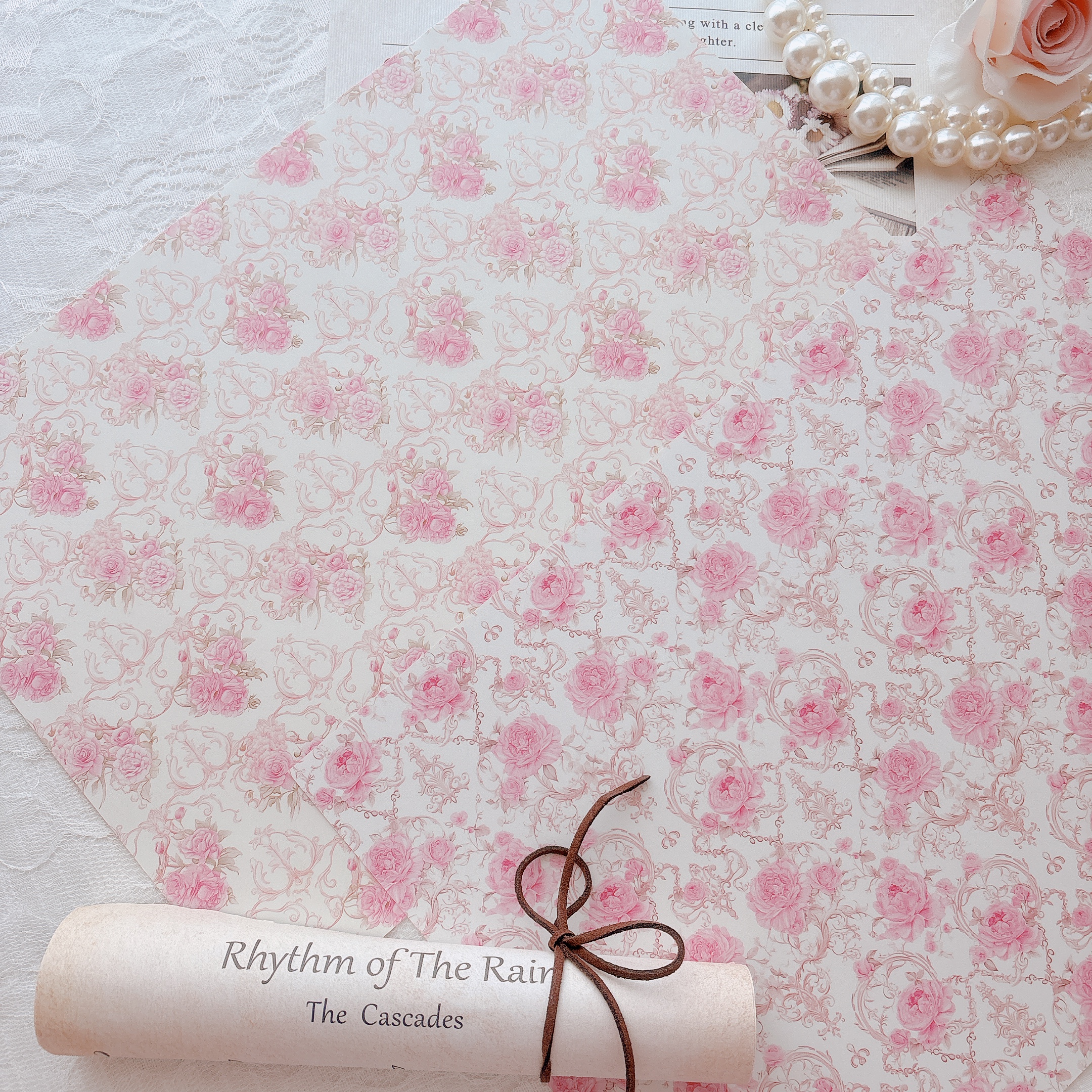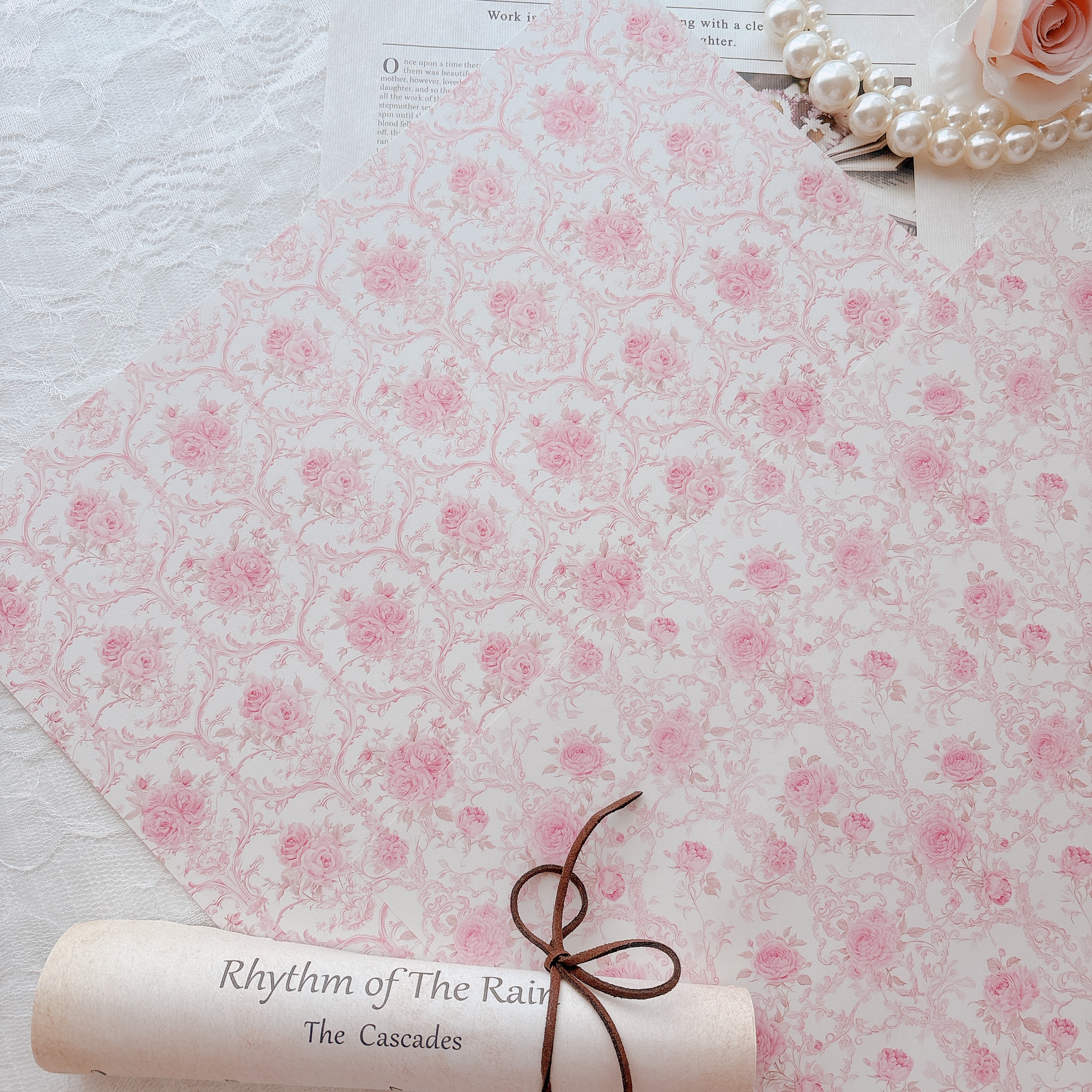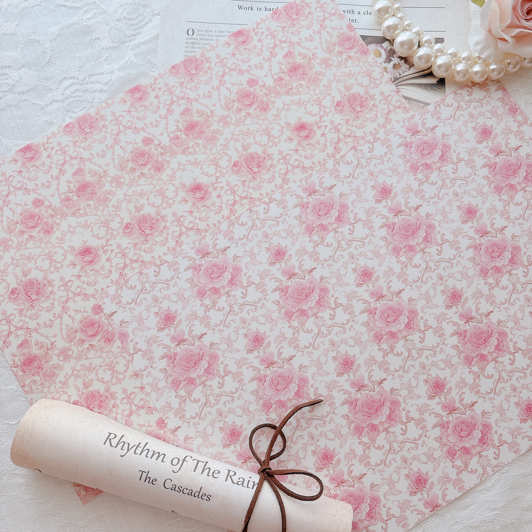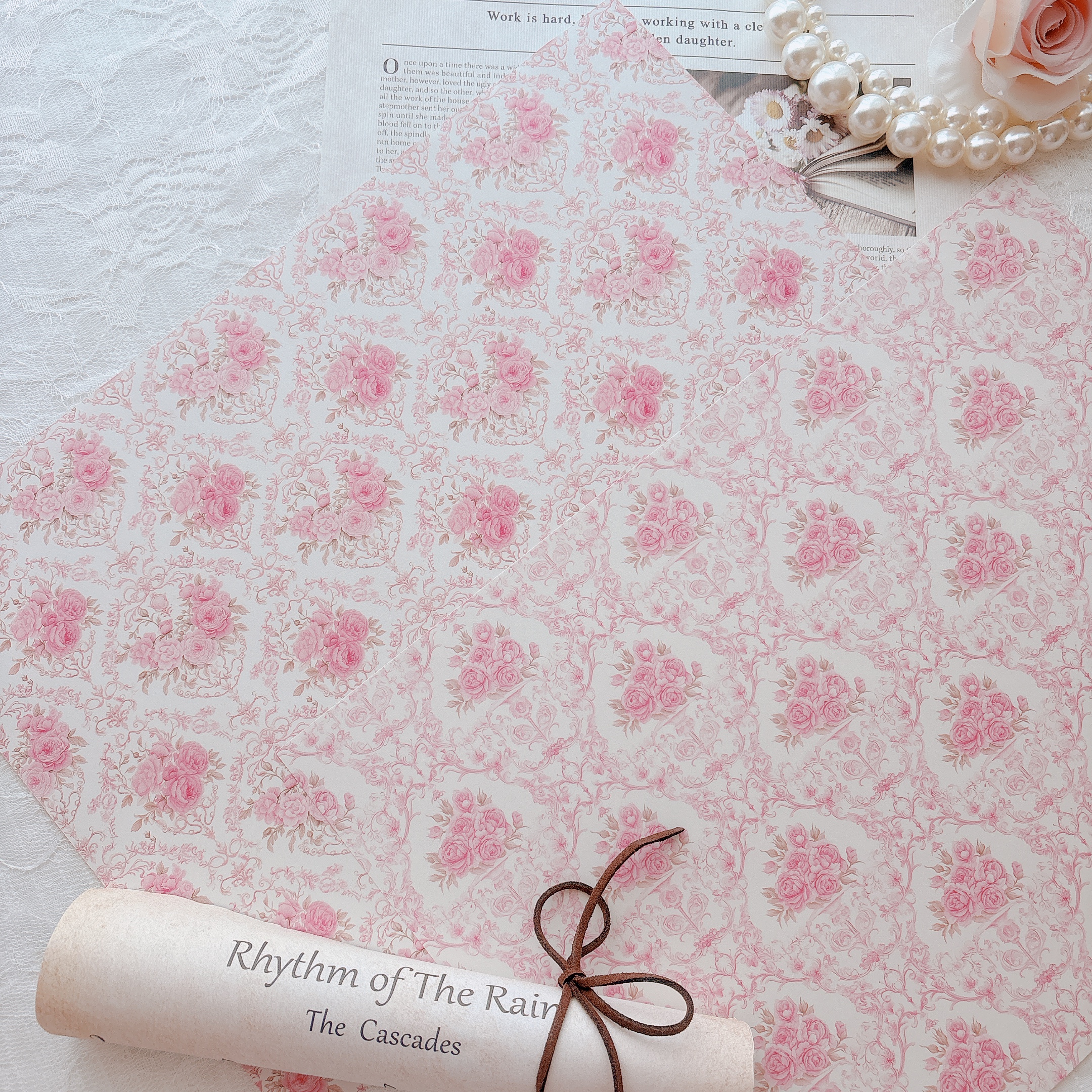 上品なピンクローズ柄のペーパーを、両面印刷の上質紙で贅沢に仕上げました。