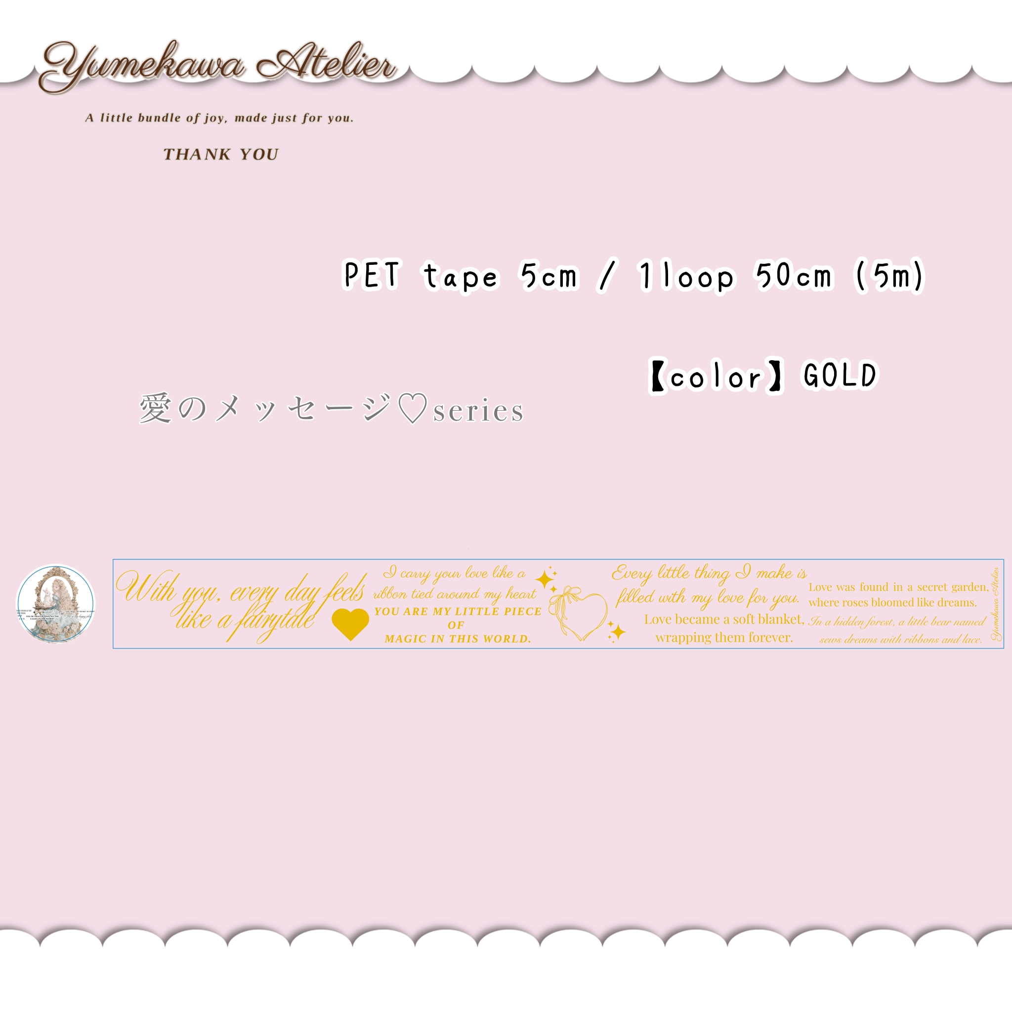 素 材: glossy(金箔) 幅 : 50mm 長 さ:5m 1ループ: 50cm (剥離紙付き)